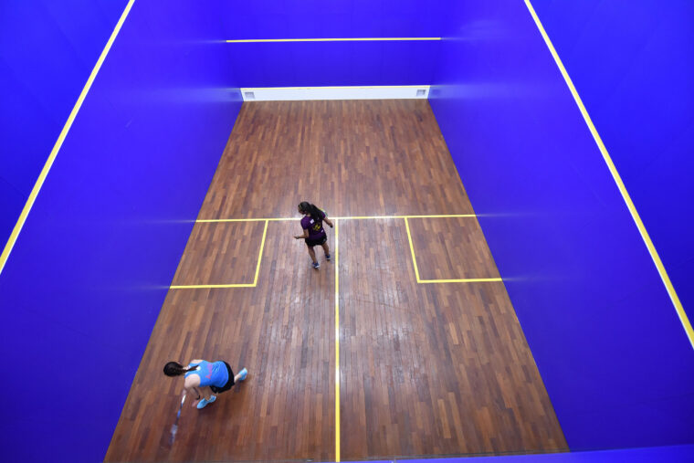 double Blueには、青色のスカッシュコートが2面ございます。